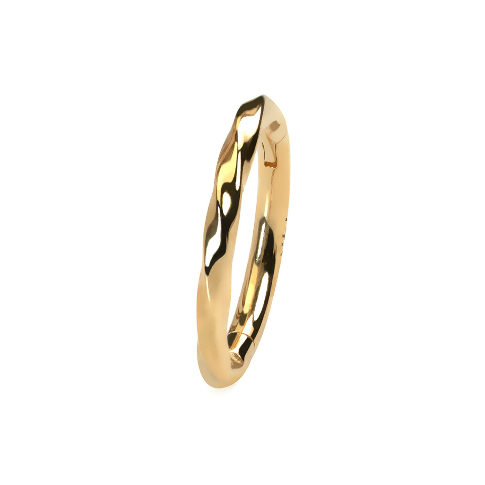 Denna vackra ring med gångjärn är tillverkad av 14k guld. Designen är en subtil twist som ger detta tidlösa smycke en intressant struktur. Perfekt för ett flertal olika öronpiercingar, som öronsnibben, helix, tragus, daith och rook. Ett tidlöst smycke som kan användas varje dag. Gångjärnslåset gör smycket enkelt att ta på och bekvämt att använda.