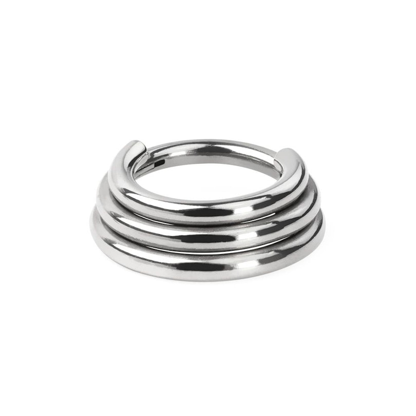 Smycket kallas en 3-lagers ring och det handlar om 3 individuella ringar som är svetsade tillsammans. Bara den mittersta ringen är en vanlig ring. De andra två har fått en del borttaget, för att det bara ska vara en ring genom din piercing.