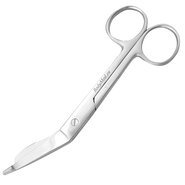 Den här bandagesaxen är som namnet antyder ämnad till att klippa bandage eller andra saker med. Saxen är viklad och har en rund ände i slutet så att man inte råkar sticka in saxen i någon.