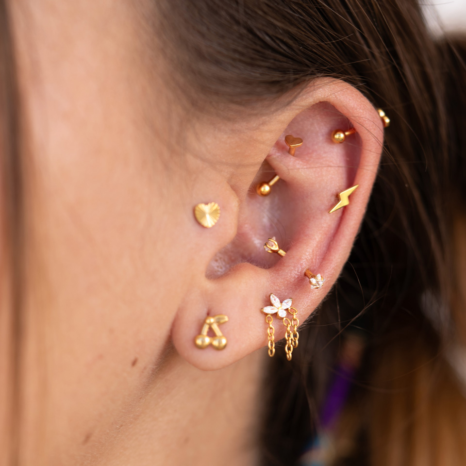 Placering: Snakebite, Lower labret, Örsnibb, Helix, Forward helix, Angelbite