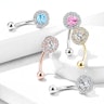 Den böjda staven på smycket är gjort av kirurgiskt stål och är belagt liksom plattan av mässing som stenarna sitter på. Så om du exempelvis väljer en guld utgåva så är både staven, mässingdelen och bindkulan belagt med 14 karat guld - så exklusiviteten på smycket stiger en aning.