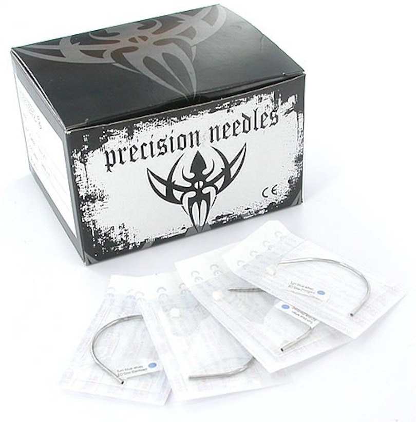 Med några piercingar är det bra att använda en annan slags nål än den vanliga som man alltid annars använder. Därför kan du köpa en böjd piercingnål. Nålen har steriliserats med gas innan förpackning, så den är helt steril när den ska användas.