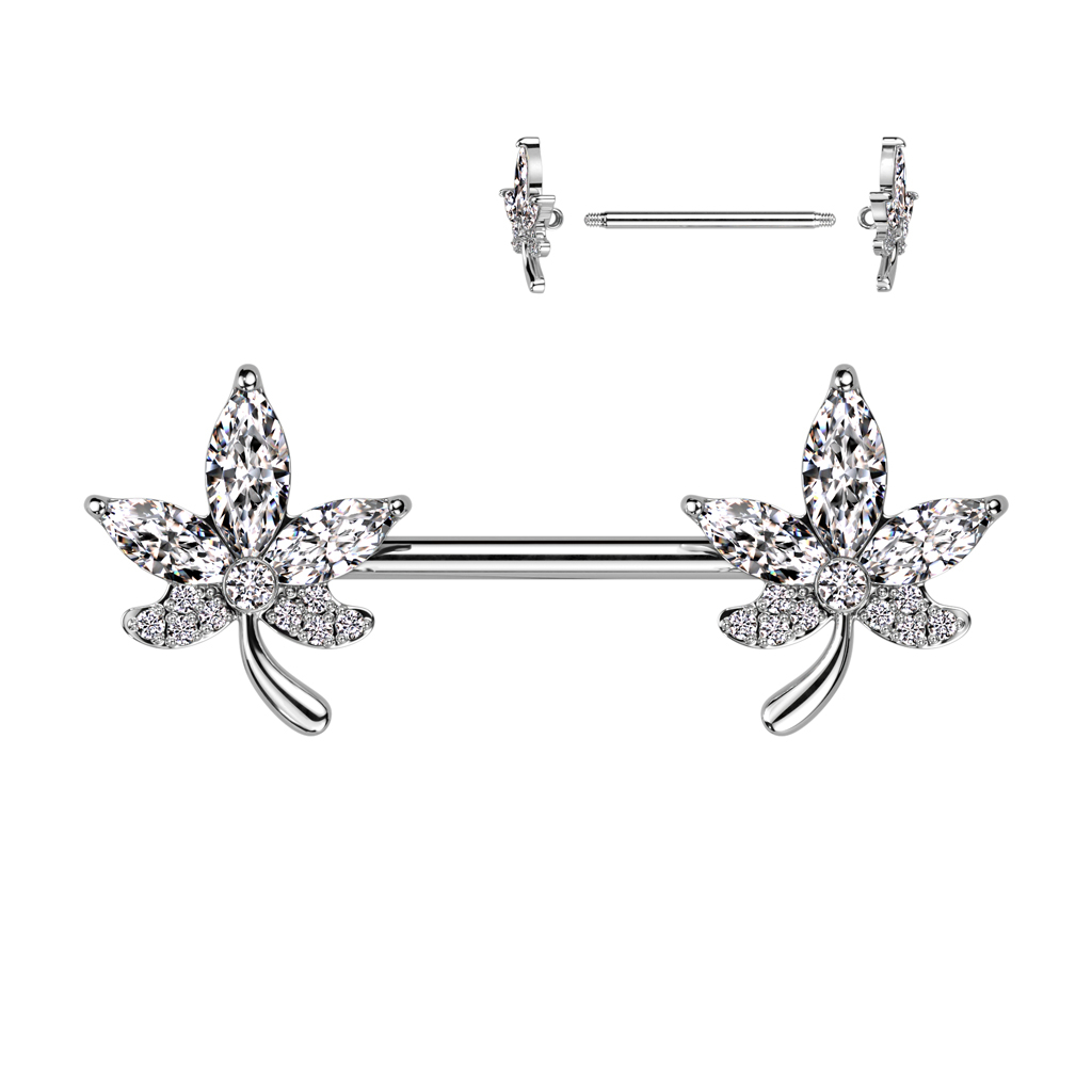 Bröstsmycket finns tillgängligt i både guld och silver. Det har en längd på 12 mm och en trådtjocklek på 1,6 mm vilket är standard för bröstsmycken. Den totala längden är 19 mm och löven har en höjd på 12,9 mm.