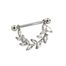 Det här bröstsmycket är perfekt för dig som tycker om lite mer feminina designer. Det här smycket består av en rak stav, precis som man brukar se i en vanlig piercingstav. Staven har dock en kula i varje ände. Kulorna kan skruvas av (samt bytas ut om du skulle vilja göra det). På staven hänger det också ett hänge. Hänget är vackert enkelt och består av marquise-slipade stenar som tillsammans skapar en design som föreställer små blad. Stenarna hänger likt blad på en gren där de sitter fast i en fin klump i varje ände av bladet.