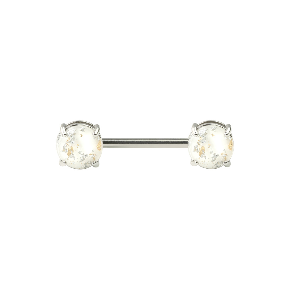 Här kan du få en bröstpiercing med en sten i varje ände av staven. Dessa stenar påminner lite om en lavalampa, utan den flytande rörelsen. Stenarna är nämligen gjorda av harts för att ge stenarna en slags lava look. Därmed har stenarna också fått ett otroligt snyggt färgspel, där den innehåller färger som matchar huvudfärgen som du väljer till stenarna. Du kan nämligen själv välja färg på stenarna som sitter på smycket – här kan du exempelvis välja en blå sten färg eller en lila sten färg.