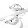 Denna bröstpiercing är en munsbit. Den består av en stav av kirurgiskt stål som går från mungipan till mungipan på en tandbyggnad med stora huggtänder. När du bär smycket kommer det se ut som om din bröstvårta sitter inne i munnen. Munnen är gjord av mässing som är belagd med rodium så att den får samma färg som staven och kulorna. Det fria stycker på insidan är ca 18 mm och från staven och ut till insidan av munnen är det omkring 8 mm. Så du bör nog mäta innan du köper smycket.