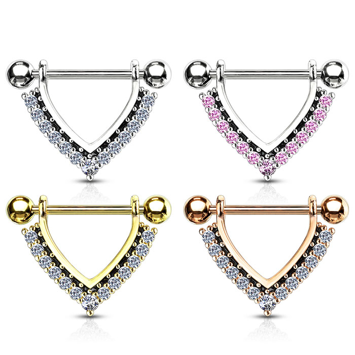 Namn: Bröstpiercing med stendekorerad v-form