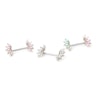 Staven är gjord av kirurgiskt stål och metallen som stenarna sitter i är gjord av mässing. Mässingen har sen blivit belagd med rodium för att uppnå en snygg vit glans. Smycket finns i, som du kan se på bilderna i tre olika stenfärger. Du väljer självklart själv vilken av färgerna som passar dig bäst.