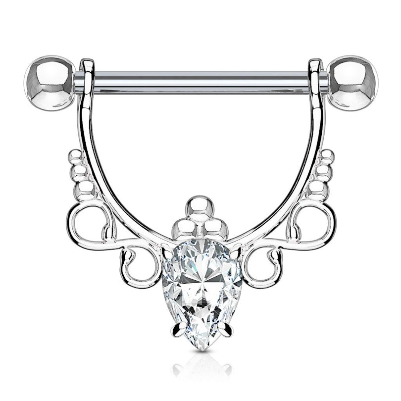 Namn: Bröstsköld med filigrandesign och päronformad sten