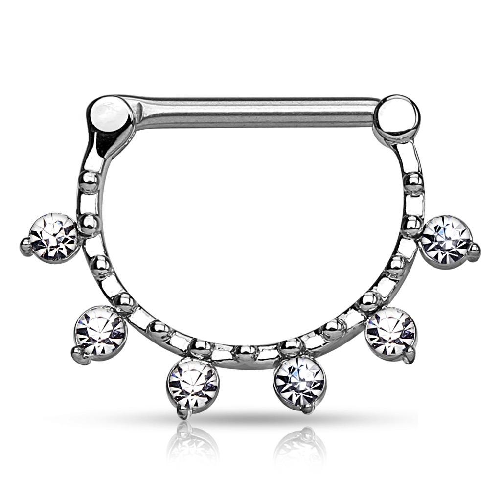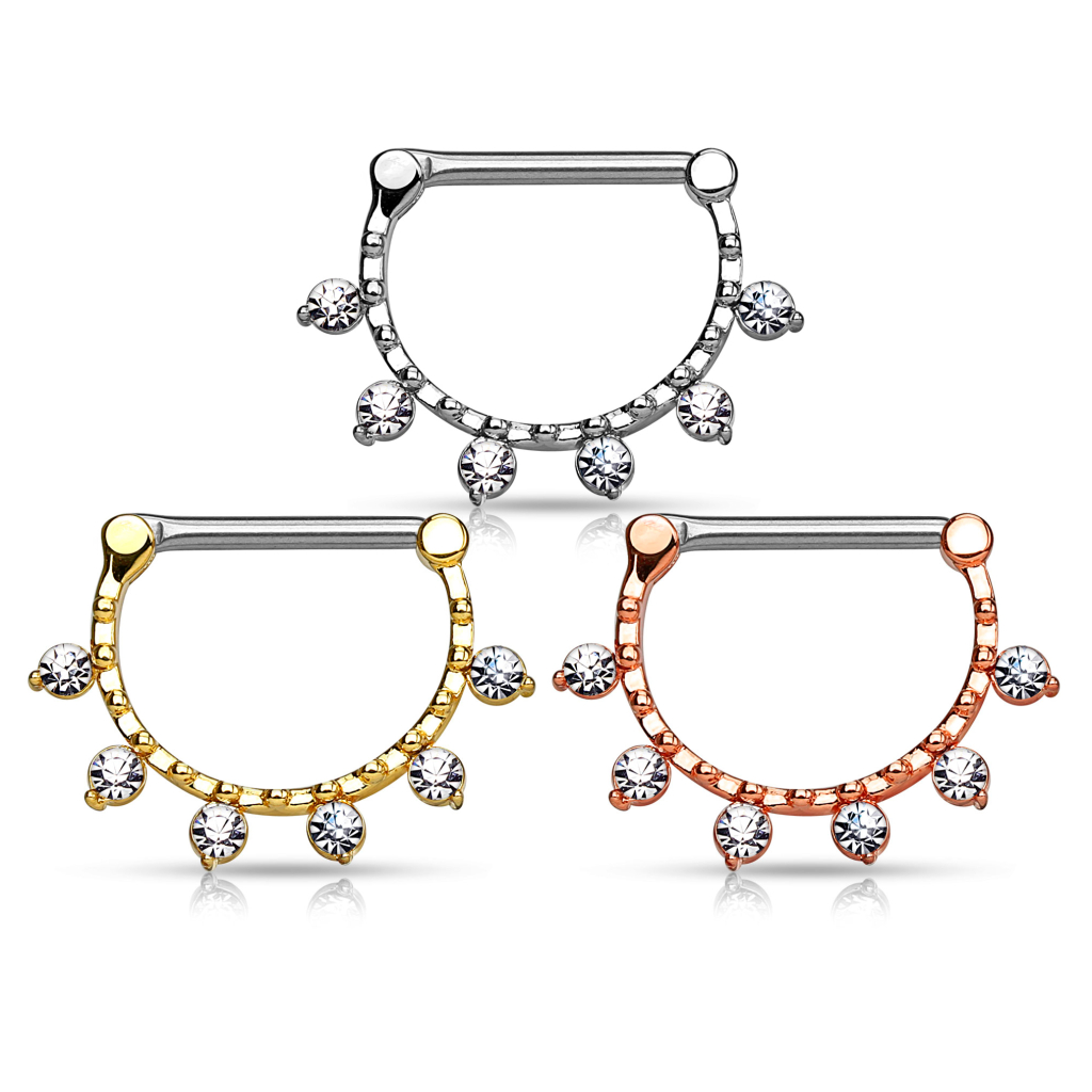 När du väl har tagit det modiga steget att pierca bröstvårtan så ska du ju självklart också smycka ut denna med ett par snygga smycken - och det passar denna galet snygga bröstvårtsclickern helt ypperligt tilll. Det här vackra smycket är ett statement i sig själv med sitt fantastiskt eleganta mönster och lyxiga look.
