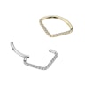 Gillar du glitter och glamour? Då har du kommit rätt. Den här vackra ringen har en tidlös chevron-design med zirconia-stenar. Den böjda delen som går in i din piercing är len för optimal komfort. Ringen har precis lagom glamour för att fånga all uppmärksamhet. Segmentet med gångjärn öppnas och stängs lätt, så att du snabbt kan slänga på det här vackra smycket när det är dags att skina.