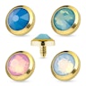 Utöver färgen kan du även välja mellan tre olika storlekar på stenen, allt beroende på hur pass synlig du vill att din dermal piercing ska vara. Ifall det är en diskret piercing som bara är meningen att den bara ska skymtas lätt så har du möjlighet att få en sten på endast 3 mm. i storlek. Är däremot din dermal piercing född till rampljuset så kan du få en helt upp i en 5 mm. stor sten. Alternativt så kan du välja den gyllene medelvägen och haffa modellen med en 4 mm. stor opalitesten.