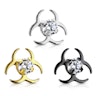 Smycket är dock helt harmlöst, så den kan skruvas direkt i din dermal fäst bas. Smycket är platt på baksidan, så när den är skruvad helt ner kommer den lägga sig tätt intill huden. Symbolen består av överlappande öppna cirklar, där det i mitten också är en cirkel. På denna dermal är den mittersta cirkeln dekorerad med en snygg klar sten. Stenen kommer vara klar oavsett vilken av de olika färgvarianterna du väljer.