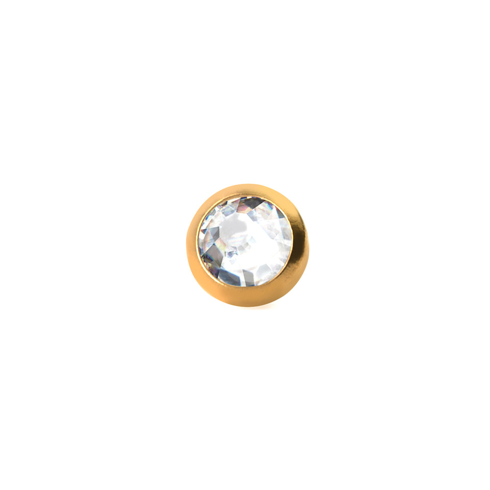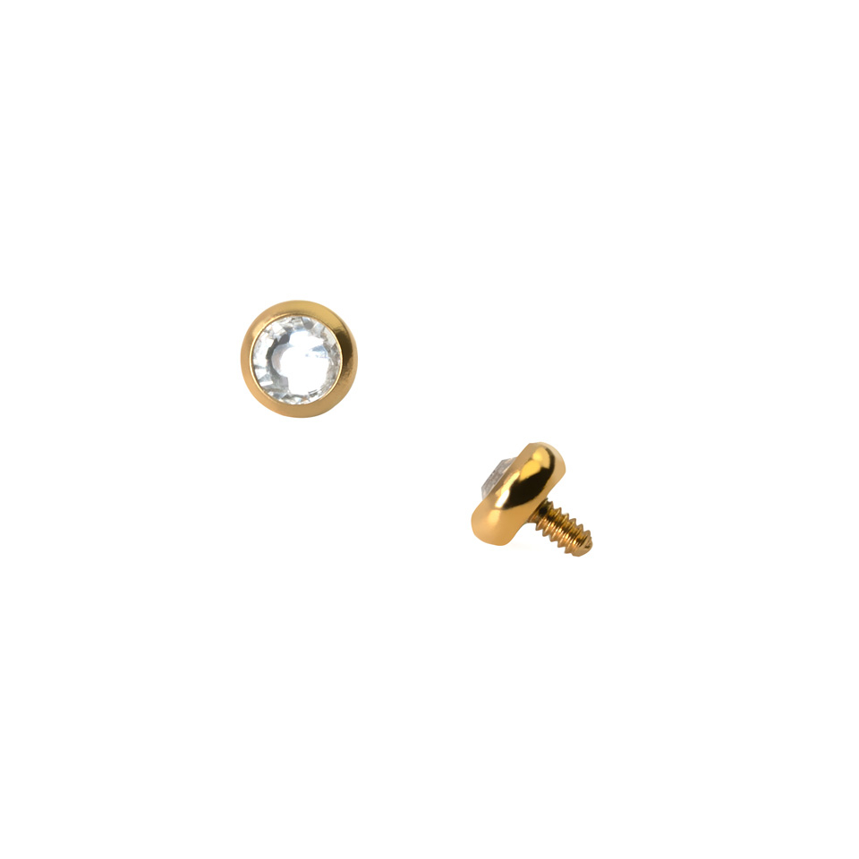 Detta smycke till en dermal anchor piercing består av en liten rund platta, där det sitter en snygg klar sten.