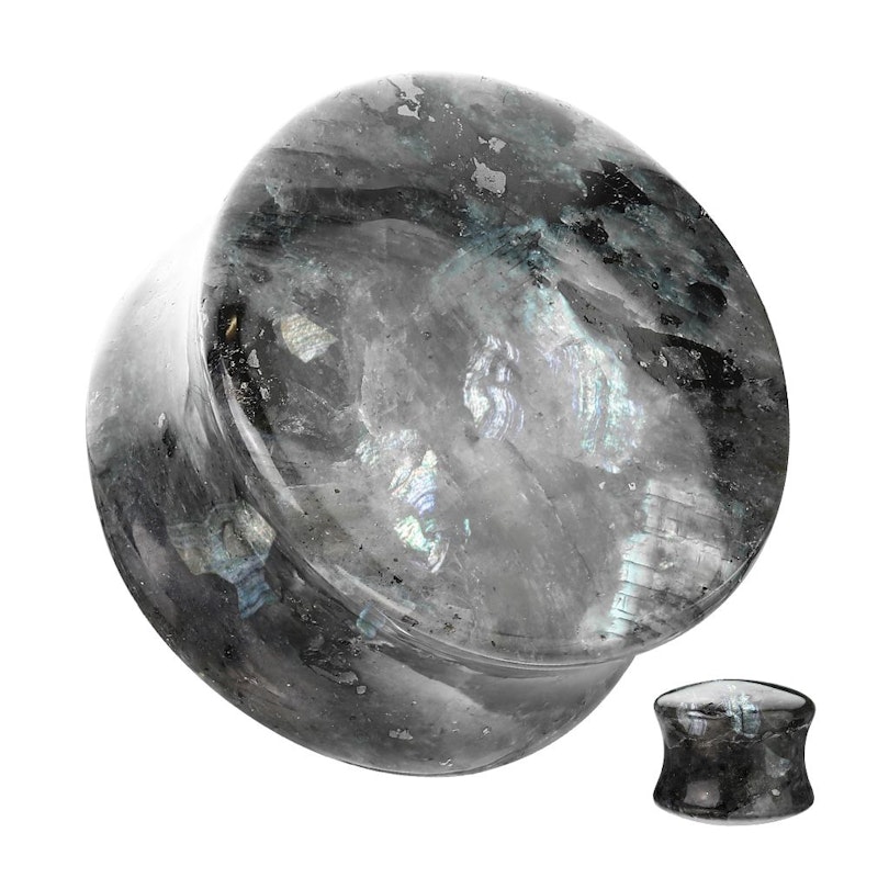 Dubbelsidig plugg i naturlig svart labradorit