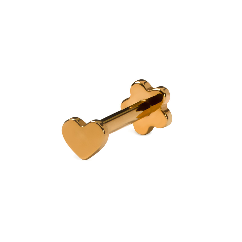 Det finns inga dåliga vinklar med denna dubbelsidiga titanlabret med blomma och hjärta, som har ett hjärta i push-in toppen och en blomma i botten av staven. Eftersom den är tillverkad av titan är den både allergivänlig och vattentät, vilket betyder att du bekvämt kan använda den hela dagen.