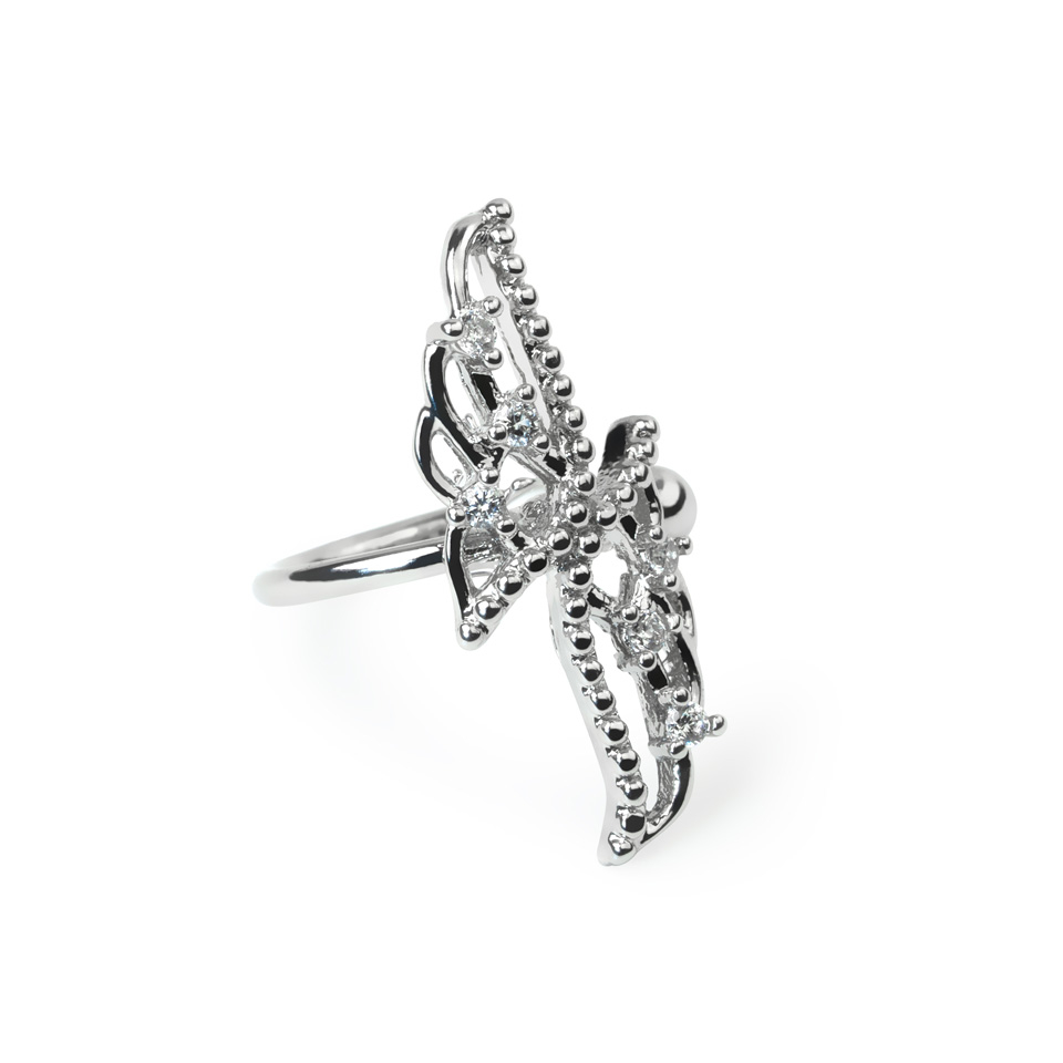 Den här glamorösa earcuffen har ett par vingar smyckade med små stenar och pärlor. Den är tillverkad i kirurgiskt stål för att den ska vara hållbar och inte missfärgas eller färgas av.
