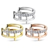 På smycket sitter det två kors med små klara stenar och ett kors utan stenar – de två korsen sitter snett över varandra på den sidan av smycket som kommer sitta främst på ditt öra. Stenarna på det ena korset tillför också elegans till smycket, vilket är tydligt när ljuset träffar dem och de börjar skina.