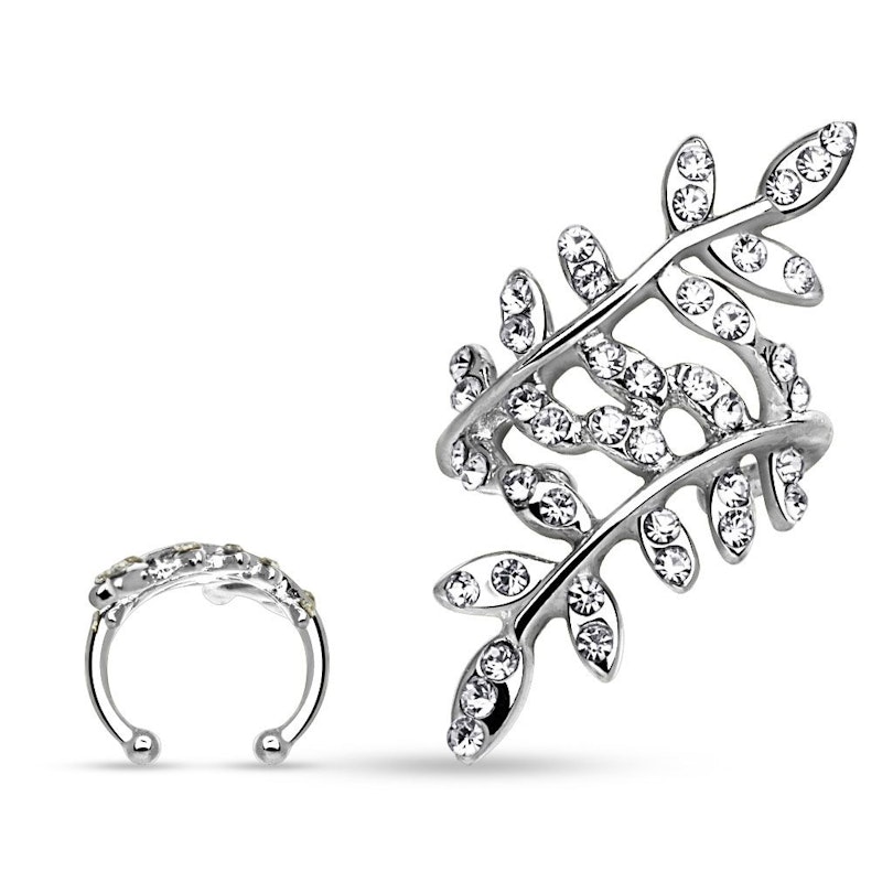 Earcuff med stenbelagda blad