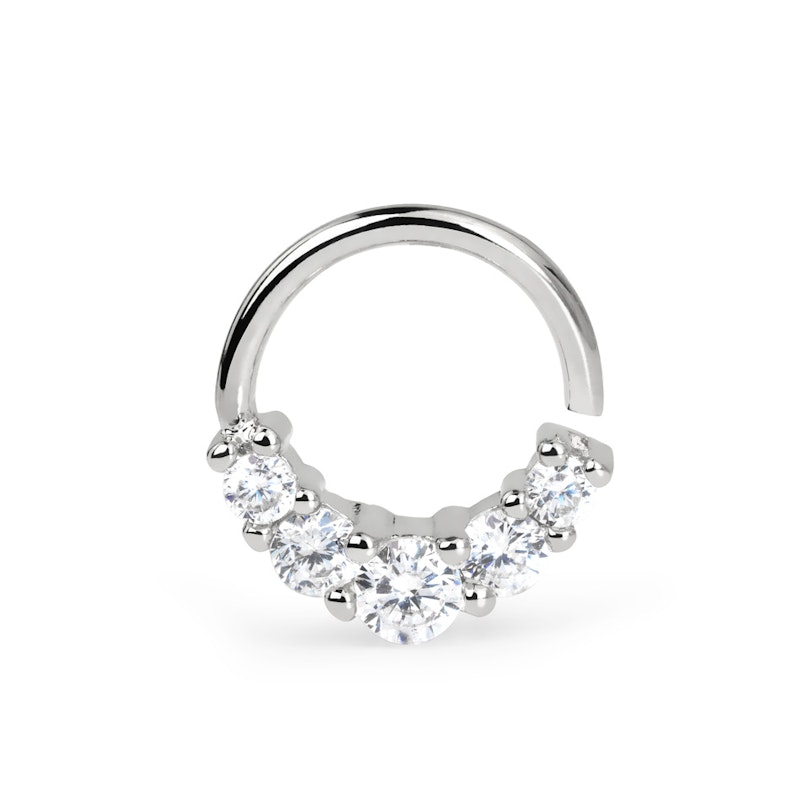 Ringen kan användas i flera olika piercingar. Det är endast din fantasi och smyckets form och mått som sätter gränserna. Använd den i exempelvis i septum, daith eller i andra hål där måtten tillåter. Ringen har en invändig diameter på 8 mm och en trådstorlek på 1,2 mm.