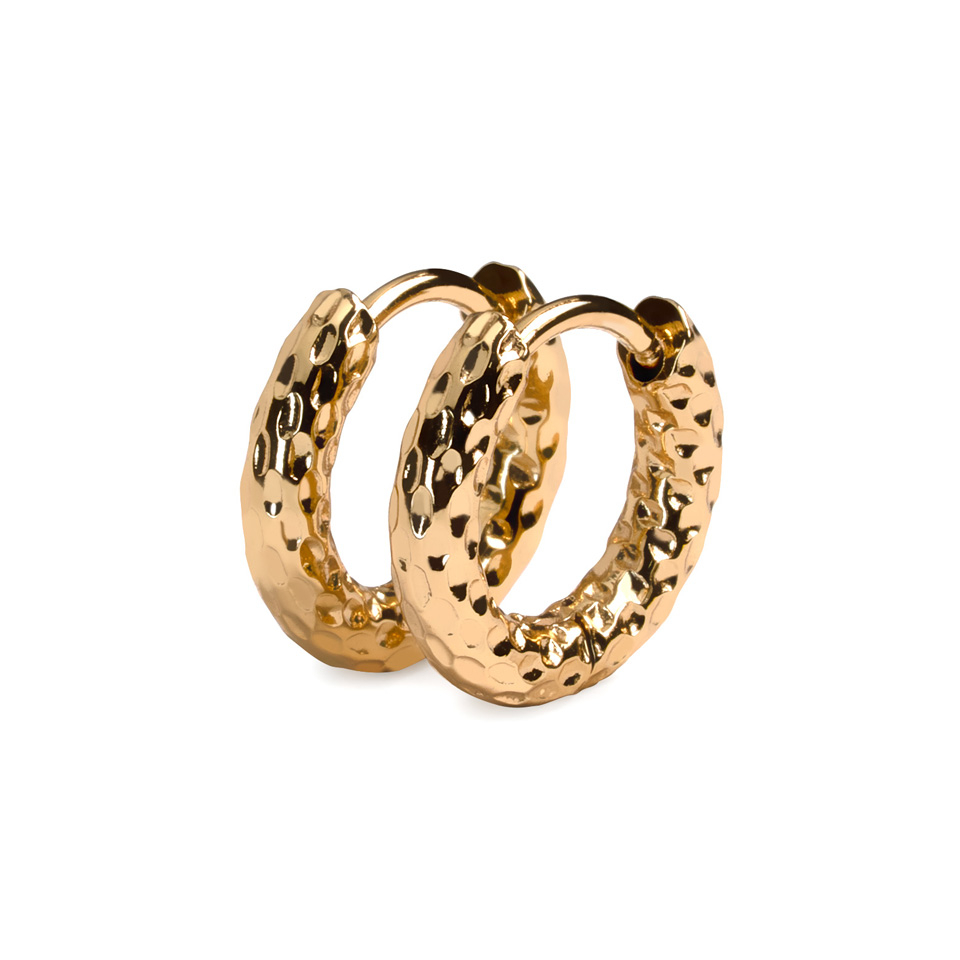 Ett par av huggie-örhängen med hamrad effekt