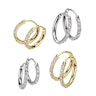 Möt ditt nya vardagsmåste: detta par av huggie-örhängen. Tillverkade av slitstarkt kirurgiskt stål gör dem designade för att hålla. Varje ring är belagd med glittrande CZ-stenar, vilket ger dig tillräckligt med bling utan att överdriva.
