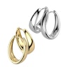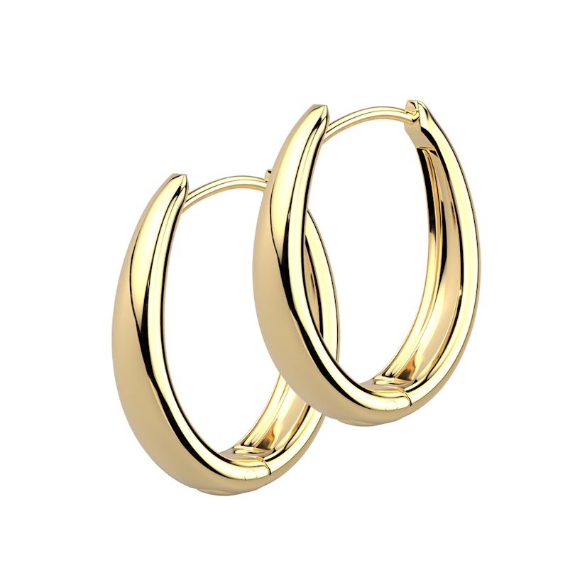 Letar du efter ringar med fördelar? Möt detta par av ovala örhängen. Tillverkade av starkt kirurgiskt stål och finns i de klassiska färgerna guld och silver. Deras unika ovala design är subtilt vidare längst ner, vilket ger din look en fräsch twist. Plus, de enkla gångjärnslåsen gör dem superenkla att använda. Sålda som ett par och är redo att direkt uppgradera dina öron.