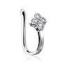 Om man hittar en fyrklöver sÄ fÄr man tur i livet. Nu behöver du inte lida lÀngre för det Àr bara att köpa denna falska nÀspiercing. Ja, du behöver inte ha hÄl i nÀsan för att kunna bÀra den. Piercingsmycket bestÄr i all sin enkelhet av en bit mÀssing som har formats till ett U och sedan plÀterats. DÀrför har det en spegelblank yta. PÄ framsidan, alltsÄ den delen som sitter i nÀsborren, Àr det alltsÄ en fyrklöver. Varje blad pÄ fyrklövern har hÀr ersatts av en klar, glimtande sten. Fyrklövern mÀter ca. 4,5 mm. i diameter.