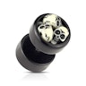 Denna fake plugg är något utöver det vanliga. Tre häftiga 3D dödskallar sticker ut från detta piercingsmycke som kommer uppmärksammas av alla.