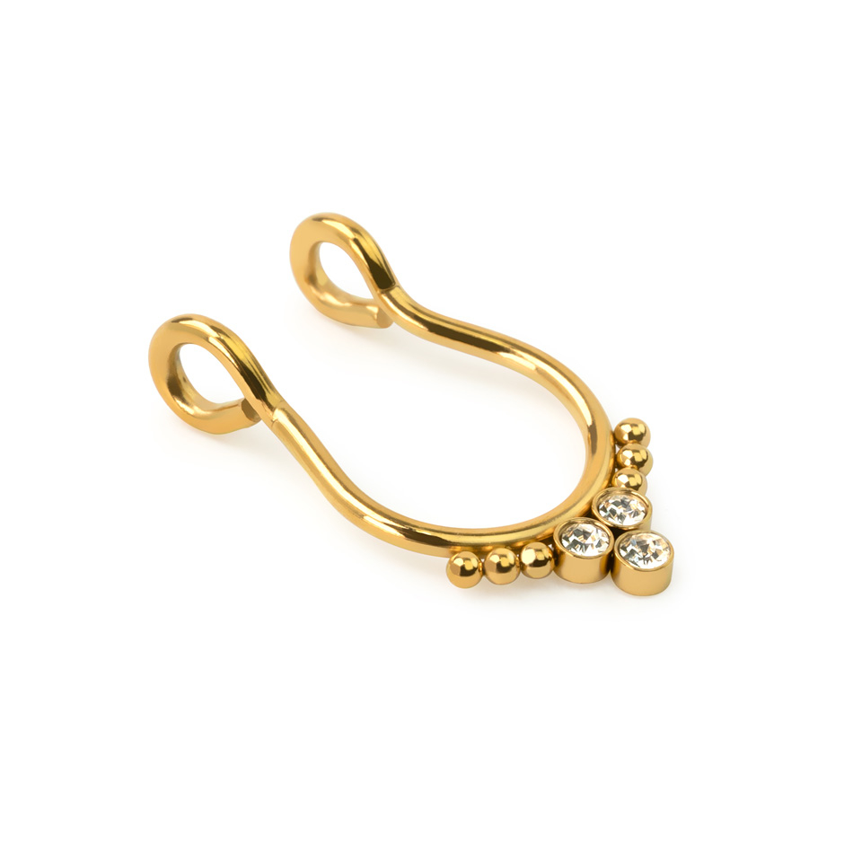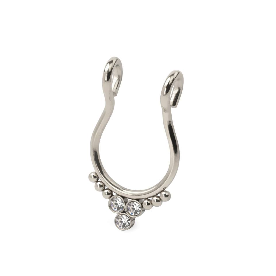 Namn: Fake septum ring med tre stenar och pärlor på varje sida
