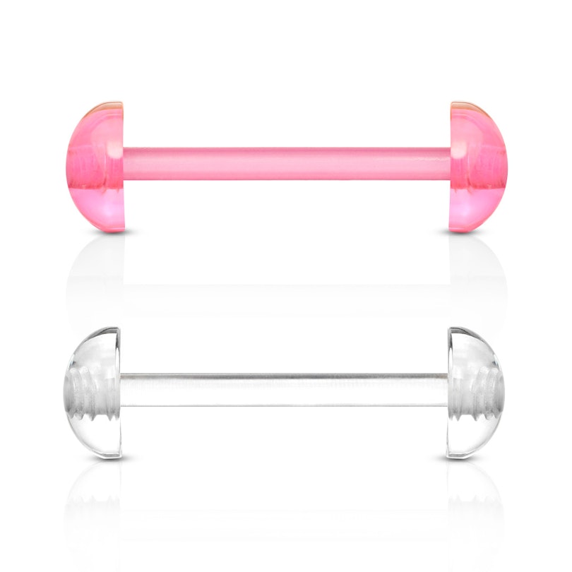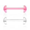 Båda ändarna på denna gömmare kan skruvas av och på, vilket gör att den sitter fast mycket bättre än den mest traditionella tungpiercing retainer.