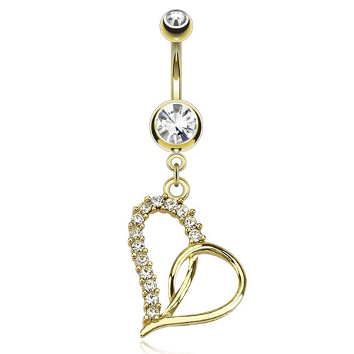 Guldpläterad navelpiercing med hjärta och klara stenar