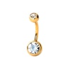 Vill du gärna ha ett nytt piercingsmycke till din navelpiercing - Så välj denna guldtitanpläterade navelpiercing med två stenar.