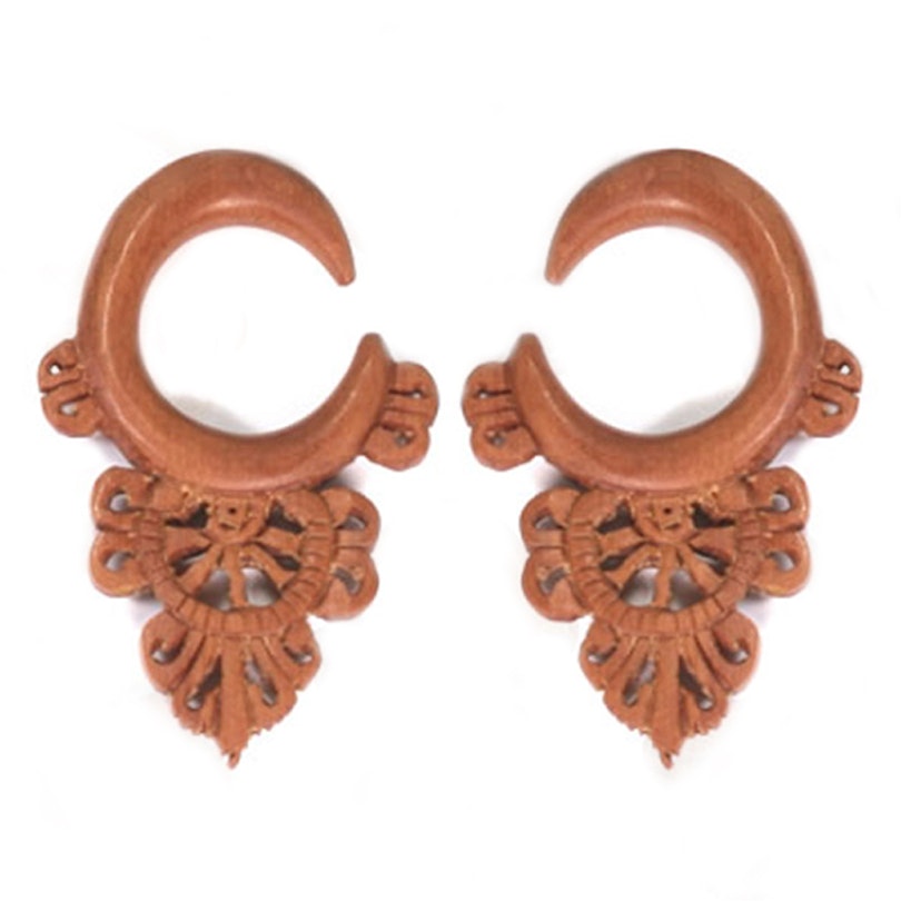 Smycket som är en så kallad hanger till töjning är gjort av trä, närmre bestämt saba. Saba är en träsort som är mycket brun-/rödlig i färger. Ägarstrukturen i trämaterialet är inte särskilt tydlig och därför gör träsorten sig riktigt bra för smyckesframställning då man på så sätt kan få flera ens smycken tillverkad utan de stora variationer.
