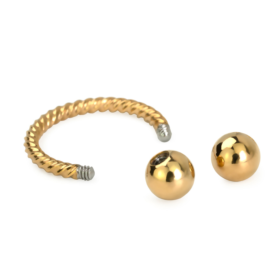 Denna hästsko ser ut som de flesta om man inte lägger märke till detaljen som är på smycket från kula till kula - själva tråden är tvinnad så att den har samma form som ett rep. Det ger en helt annan look som både kan se mer rå ut men också ge mer stil. Det liknar längre inte "bara" ett start-smycke man har i utan nu finns det också några detaljer på smycket. Du kan välja din hästsko bland flera olika färger och trådtjocklekar. Kulstorleken och diametern hänger tillsammans med trådtjockleken men det kan du se i rutan ovanför.