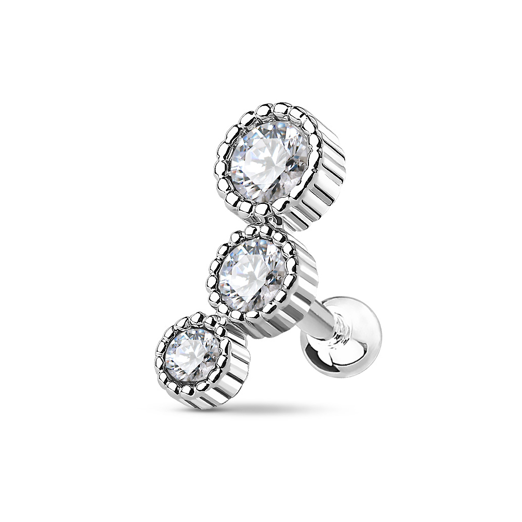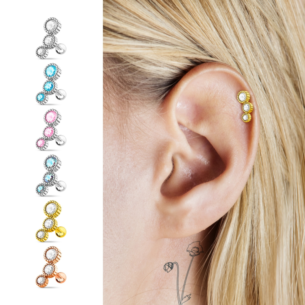 Namn: Helixpiercing med 3 runda stenar i olika storlekar