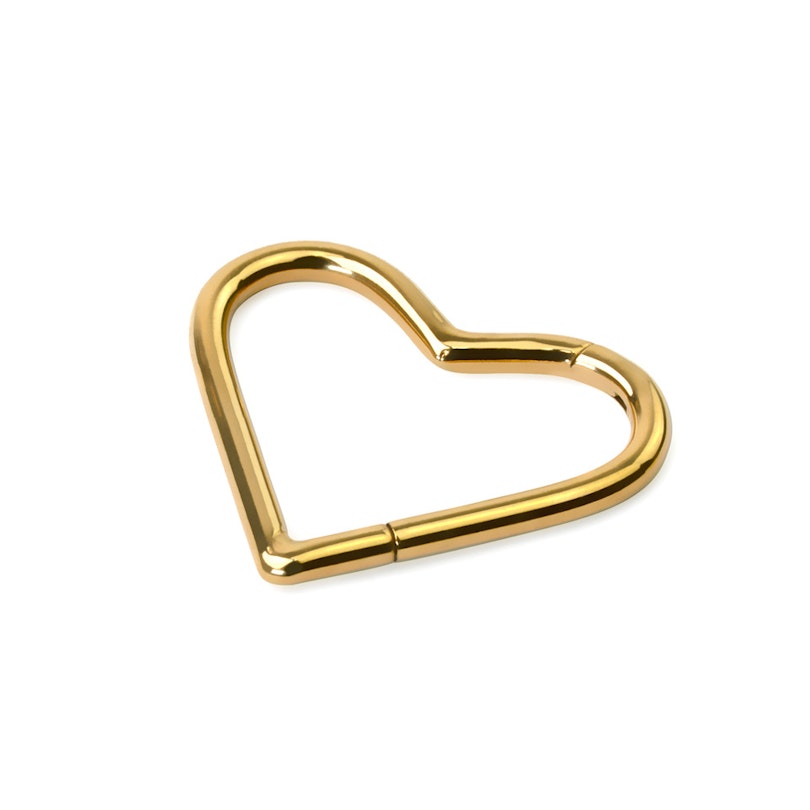 Den här ringen med gångjärn har en av våra favoritformer: ett hjärta. Om du är ute efter ett smycke som är både elegant och har en fin betydelse, då har du kommit rätt. Ringen öppnas med ett gångjärn som gör livet enkelt för dig. Dra bara upp segmentet med gångjärnet, sätt i smycket och stäng det igen. Du kan bära det här vackra hjärtat i flera olika näs-eller öronpiercings.