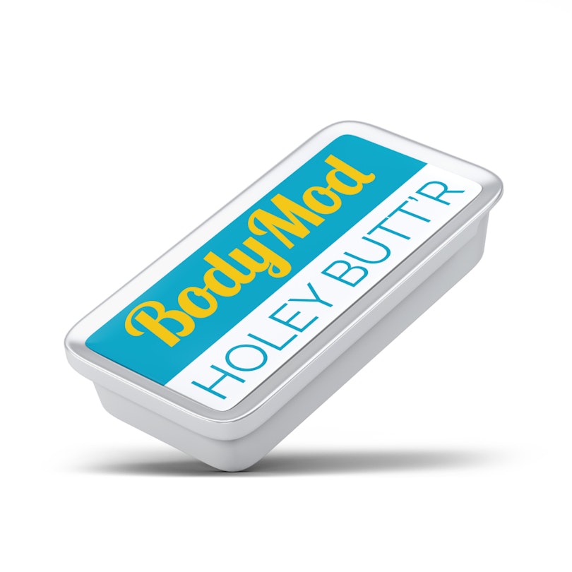 Holey Butt'r är en vegansk eftervårdsprodukt som hjälper till att underhålla din töjning. Den innehåller en naturlig blanding av mjukgörande medel och är samtidigt fuktgivande.
