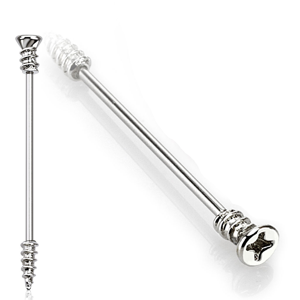 Här får du ett smycke som är lite rått och fantasifullt i sin design. Staven är slät och enkel i mittendelen från örkant till örkant. De två yttre styckena är dock allt annat än tråkiga då varje ände är formade som en skruv. Den ena änden är alltså formad som själva skruvhuvudet medan den andra föreställer skruvens spets.