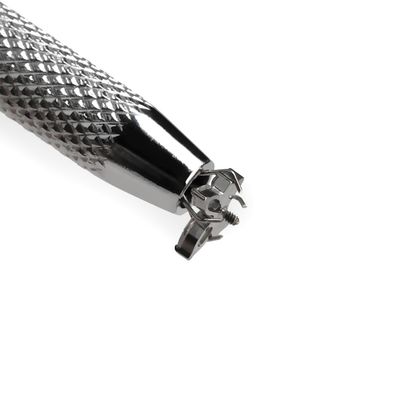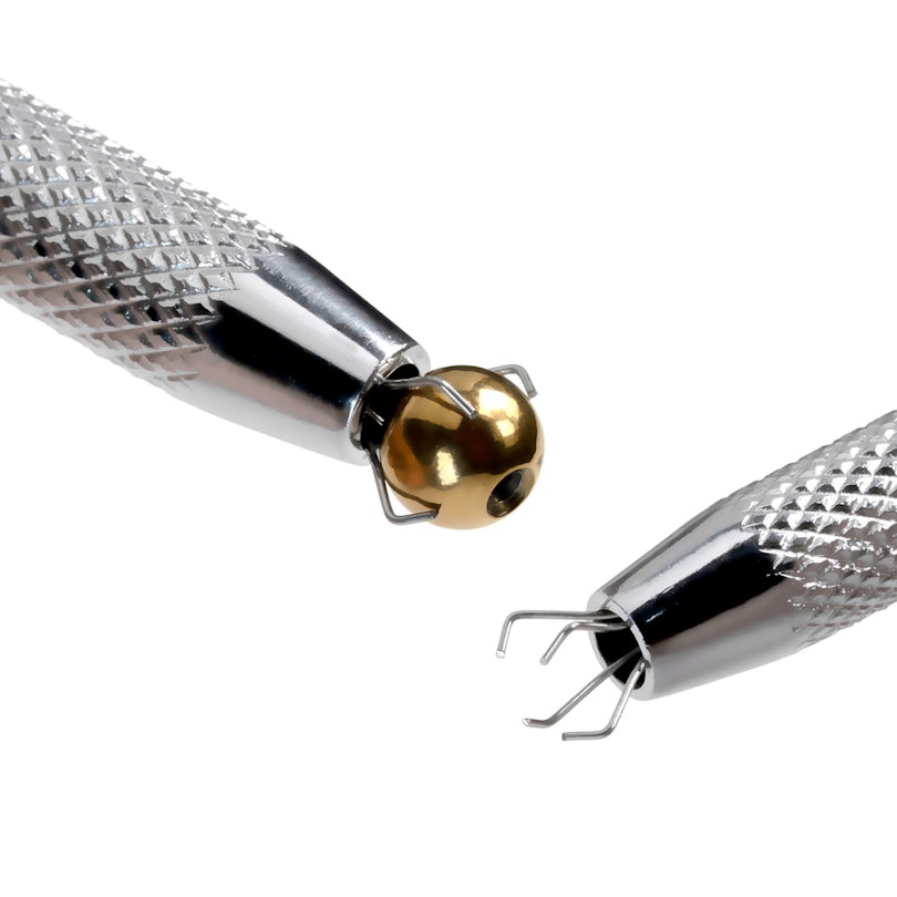 Tången har fyra armar som fungerar som små pincetter som öppnas från toppen när du trycker, och kan hålla kulor mellan 3 och 6 mm medan du skruvar in dem i din barbell, ring eller labretstav. Se bara till att hålet eller skruven på kulan vänder sig utåt, det är så den gör sin magi.