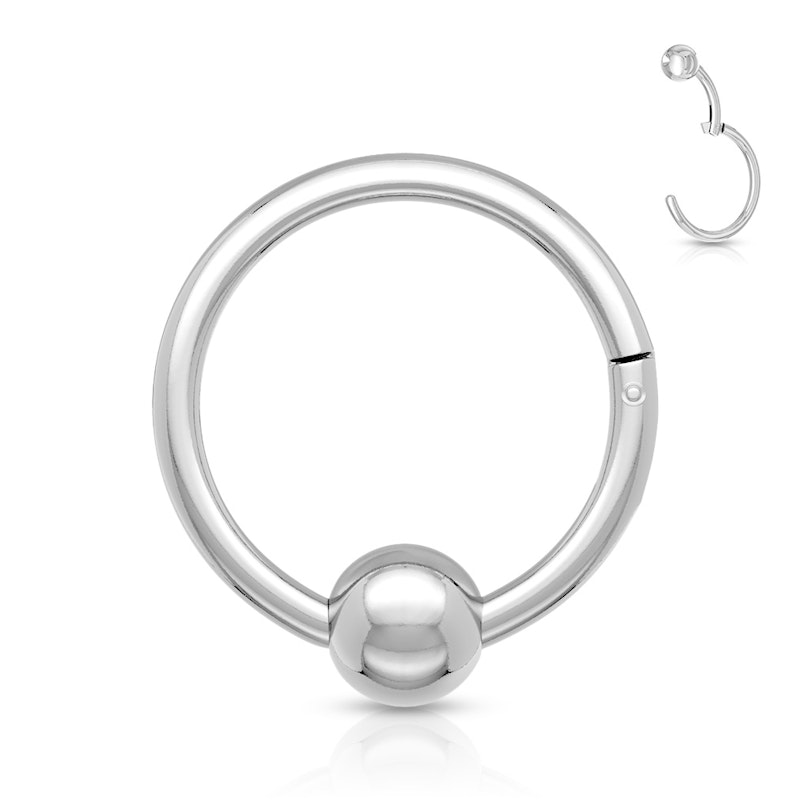 Normalt när man talar om kulring så är själva kulan låsdelen och som kan tas ut och sättas in igen. Men så är inte fallet här. På denna ring är kulan en del av själva ringen. Kulan är fäst till en liten bar som är fäst till resten av ringen med ett gångjärn. Den gör att du lätt kan öppna smycket genom att ta tag i baren så gångjärnet öppnas. När du vill stänga smycket igen gör du samma sak igen men bara motsatt. Ringens ände klickar sig in i en liten fördjupning som kulan har.