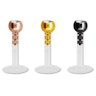 Staven på denna labret är gjord av PTFE som är ett otroligt flexibelt material. PTFE är mjukt och böjbart till skillnad från stål. Smycket är därför perfekt till användning i en läppiercing där man gärna vill skona tänder och tandkött. Bakplattan på smycket gör det också perfekt som läppiercing. Själva designen är perfekt i sig om du har en traguspiercing och inte vill ha någon stor låskula precis vid örats ingång.