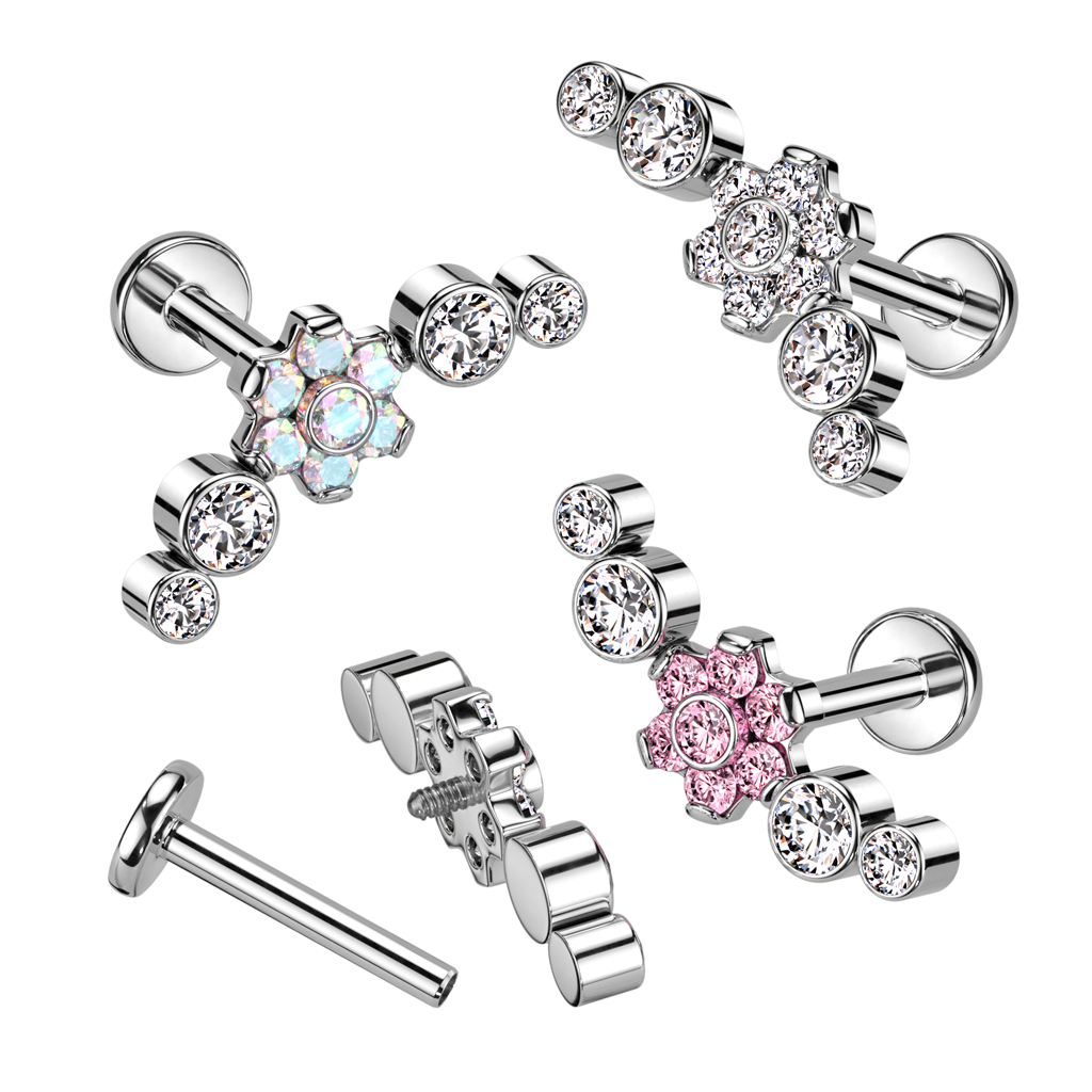 Den här labretten är gjord av titan, ett av de mest hållbara och rekommenderade materialen för piercingar. Smycket har en invändig tråd vilket förhindrar att huden rivs upp när man sätter på den.