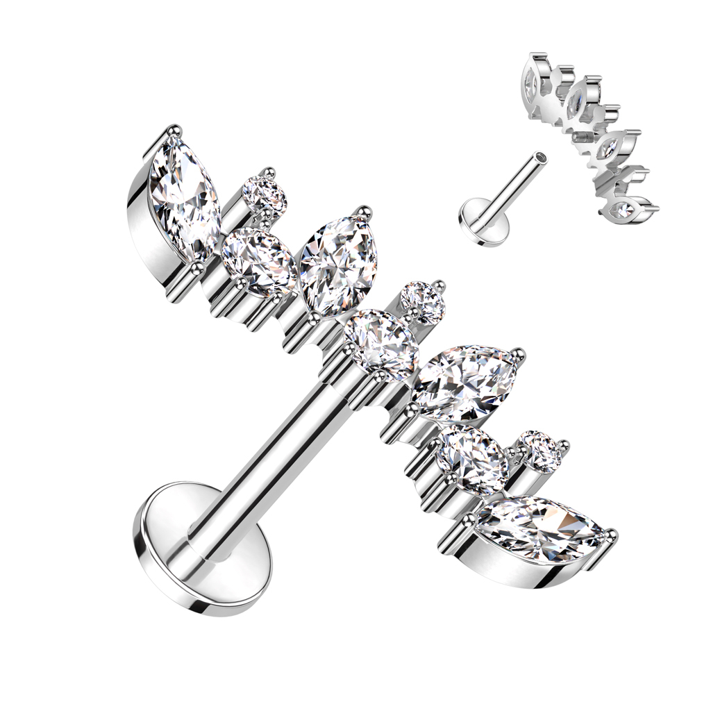 Labret i titan med marquise-stenar och runda stenar