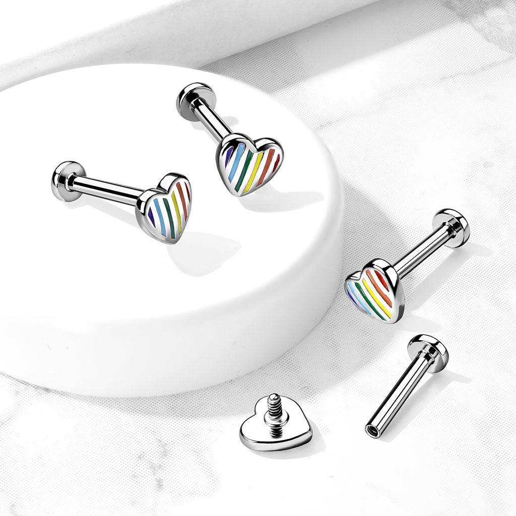 Labret med invändig tråd och regnbågshjärta