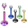 Läcker labret av kirurgiskt stål med en vacker titan plätering i fem olika snygga färger. Labretten är lite annorlunda än de flesta andra, eftersom den inte bara är vanlig silverfärgad. Samtidigt har detta smycke den stora fördelen att skruvgängan sitter invändigt så risken för rivsår när du tar smycket av och på är minimal.