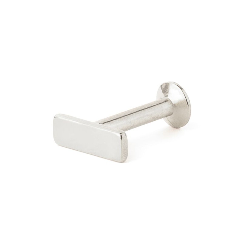 Smycket du ser på bilden ovan kallas för en labret och används i läppiercingar. Formen på smycket gör det dock lite mer till ett örhänge. Labretten är nämligen utrustad med en rektangulär fyrkant på framsidan. Storleken på "kulan" kan du välja mellan tre olika storlekar. Storlekarna är 6 mm., 9 mm. och 12 mm. Normalt sett ser manbara vanliga kulor i läppiercingar så därför gör sig denna modell bättre i en öronpiercing. Men det är naturligtvis en bedömningsfråga - så länge måtten passar din piercing kan du naturligtvis använda smycket var du vill.