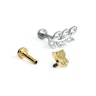 Den här eleganta labret med blad har en inre tråd. Labret med invändig gänga har en gänga på insidan av staven, och den dekorativa toppen har en gängad del som skruvas in i labret. Dubbeln som går genom piercingen är tillverkad av kirurgiskt stål, och bladtoppen är av mässing. Smycket är belagt, och du kan välja labret i blank, gyllene eller rödguldsfärg.