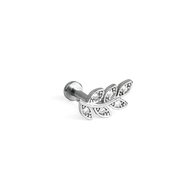Bladet är idealiskt format för öronpiercingar med sin böjda design och gnistrande cubic zirconia-stenar. Bladdesignens storlek är 4,8 x 9,5 mm och trådtjockleken är 1,2 mm. Du kan till exempel använda den i din helix, tragus, snäckan eller loben. Det här smycket finns i två längdalternativ; 6 mm eller 8 mm, så att du kan få en bra passform för din piercing.