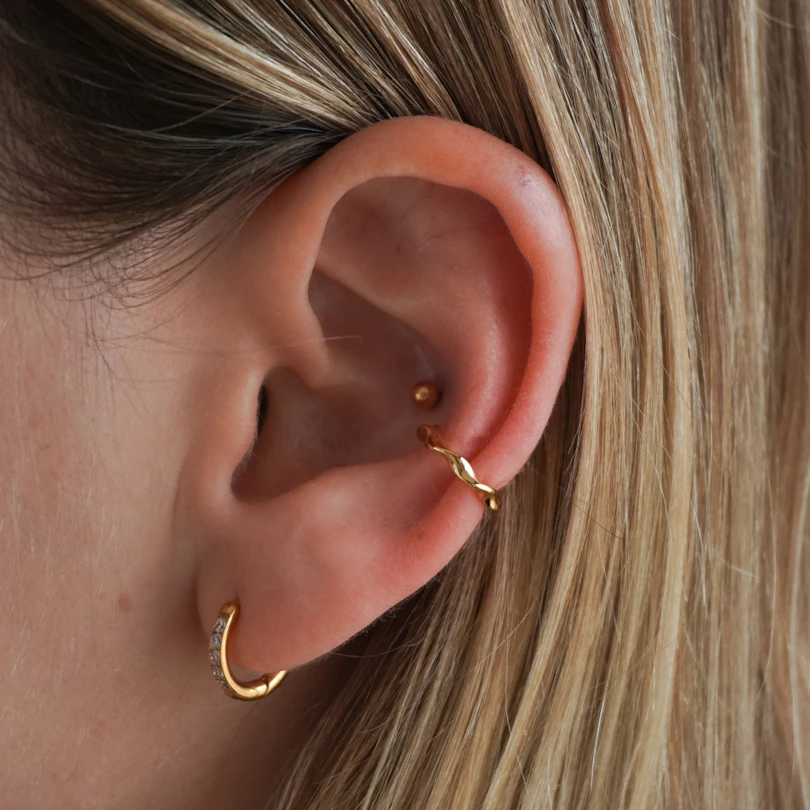 Ibland är mindre verkligen mer. Denna minimalistiska vridna earcuffen håller det enkelt med en ren, tvinnad form som kompletterar din look utan att dra för mycket uppmärksamhet.